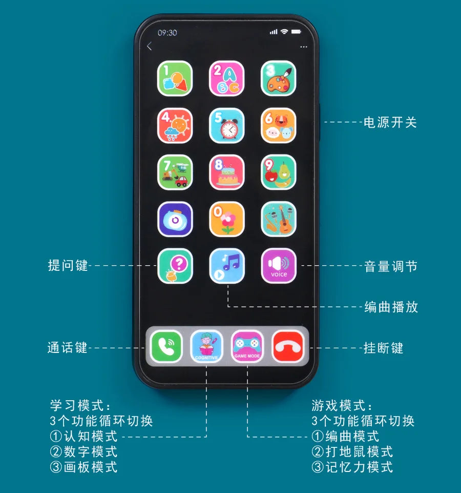 Button music playback: play back the notes that the child pressed before, making it sound like a <music>. Store up to 50 notes. If the child has pressed more than 50 notes, <reminder sound effect> will be played.