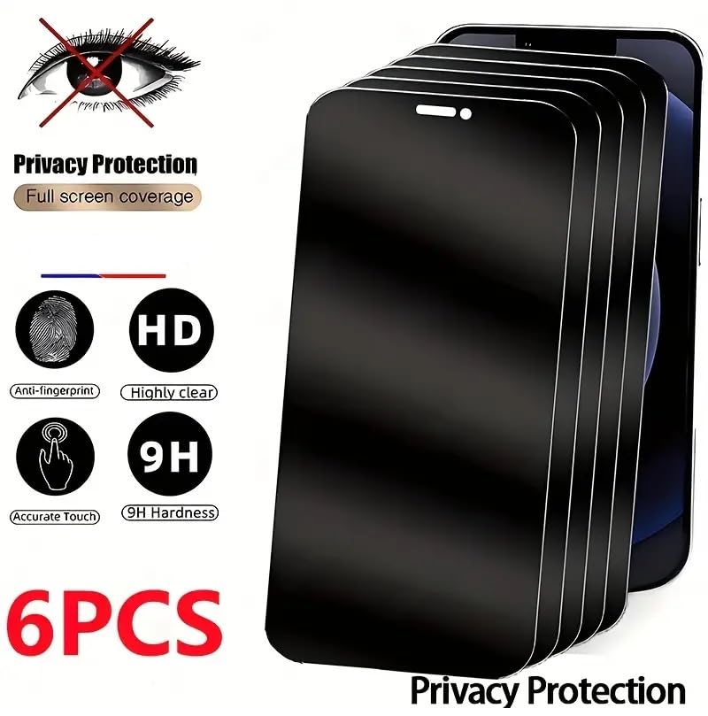 RPH 6 Pcs Full Coverage Privacy Protection Screen Protector for iPhone 16 Pro Screen Protector Privacy, Anti Spy Tempered Glass Film, Anti Scratch
