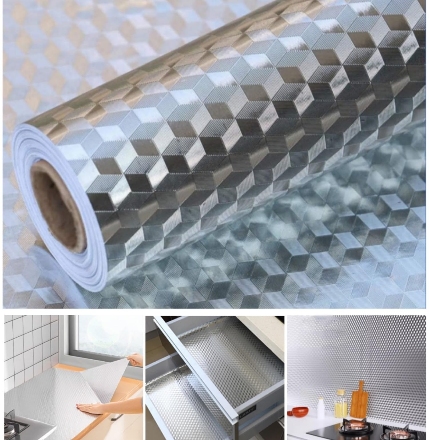 RPH Multipurpose Aluminum Foil Sticker Creative Covering: Self-Adhesive Shelf and Drawer Liner,Waterproof Kitchen Cupboards Sticker, Privacy Window Covering (15.7"x78.7",3D Cube)